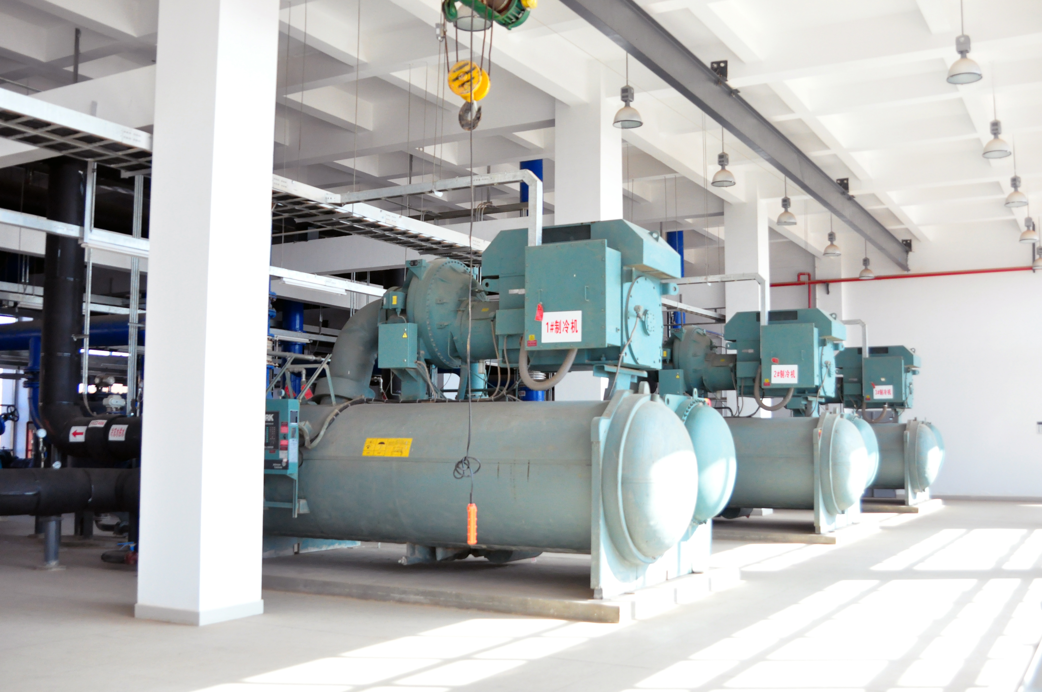 3x2000RT+1x1350RT電制冷機,水蓄冷,2x7MW+2x4.2MW燃氣熱水鍋爐